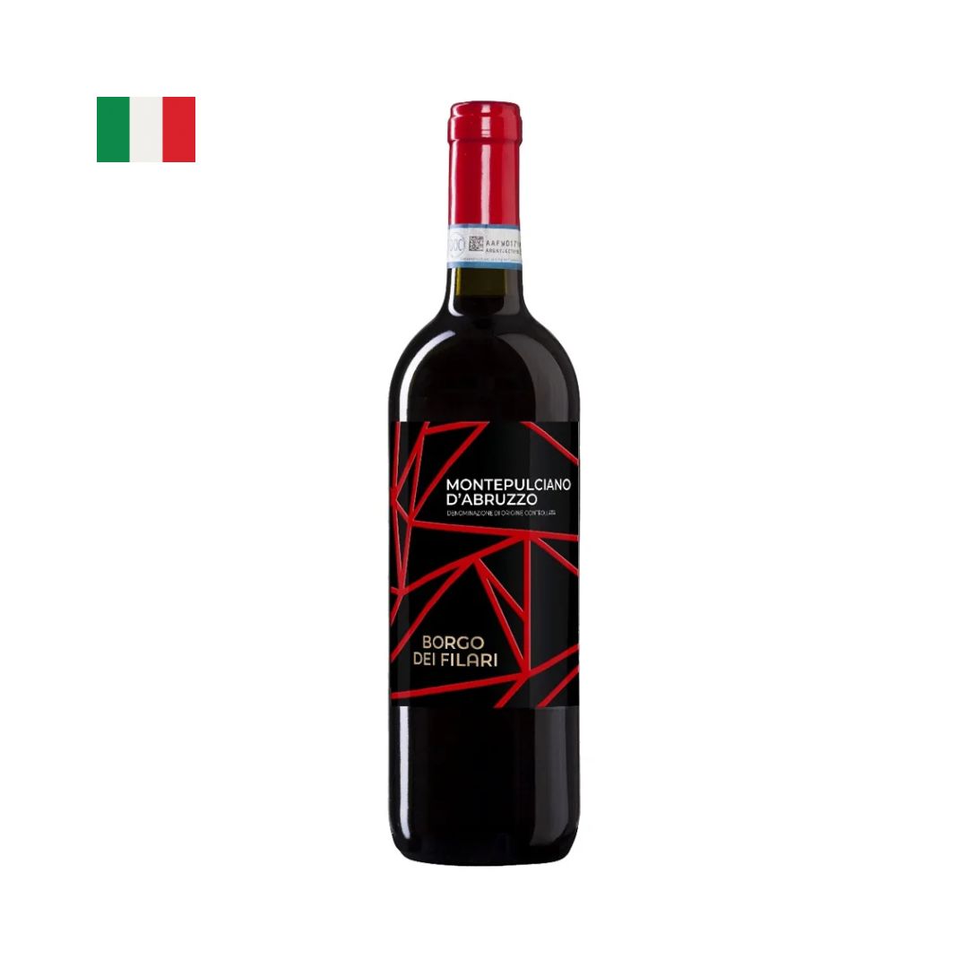 O Vinho Borgo dei Filari Montepulciano D'Abruzzo DOC captura a essência dos vinhedos localizados aos pés do maciço Gran Sasso, no centro da Itália. Elaborado 100% com a uva Montepulciano, a segunda mais cultivada no país, este vinho é vinificado em tanques de aço para preservar todo o seu frescor e caráter frutado, sem passagem por madeira.